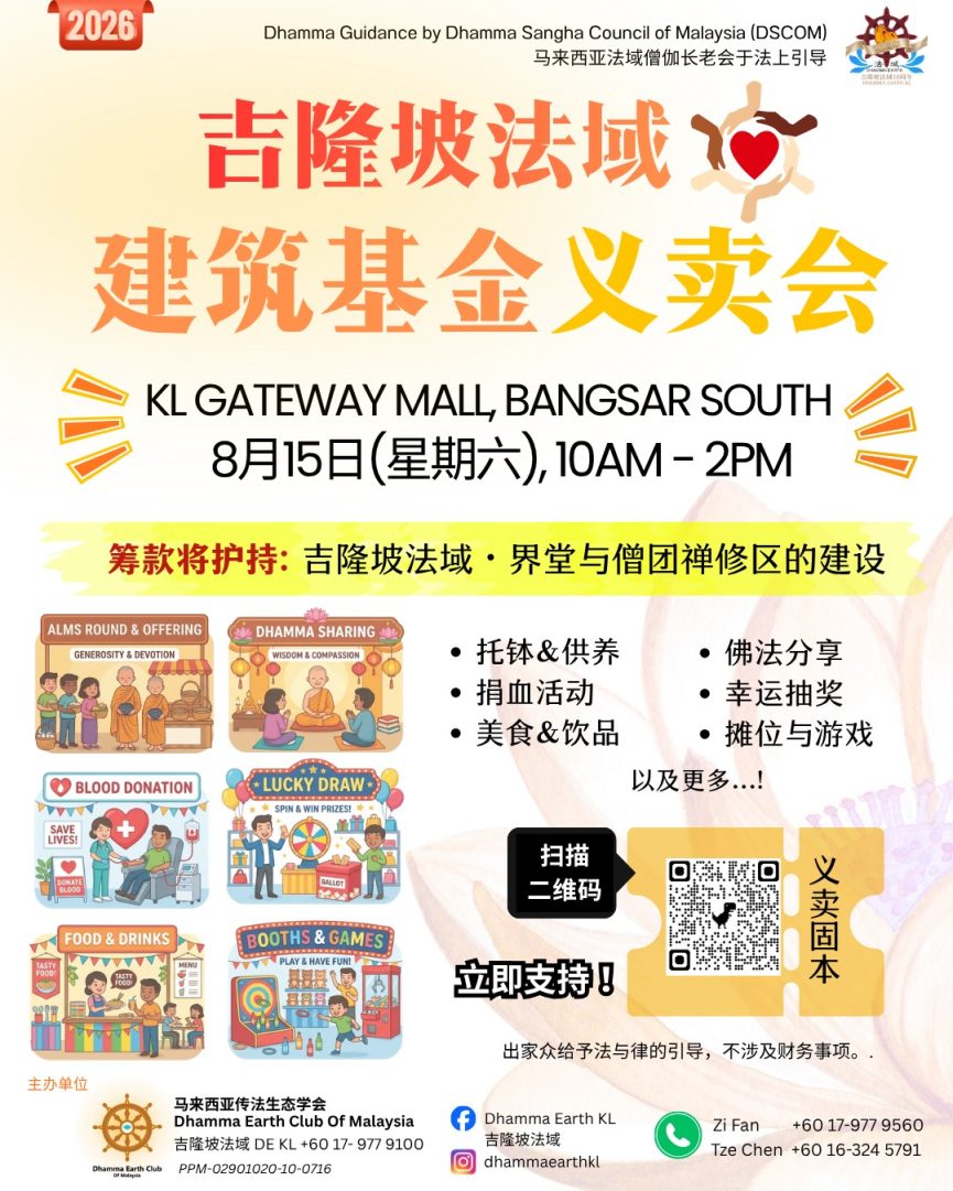 我们即将举办一场盛大的义卖会以筹集吉隆坡法域的界堂和僧众住宿建设基金。在此诚邀您与家人朋友一同前来共结善缘,参与这项殊胜的布施与护持善业。