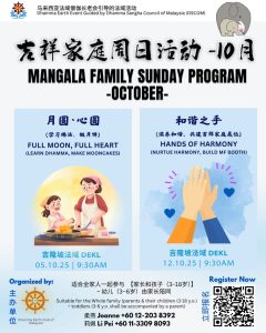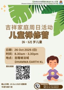 Next Upcoming Event 11 10 月 2025 卡提那前夕(古晋法域) EVENT DETAIL 00 days 00 hours 00 minutes 00 seconds 活动日历 活动表 Category 佛法开示 儿童,青少,青年活动 常规活动 庆典/仪式 教育 禅修 线上活动 Location 古晋法域 吉隆坡法域 Select1 月2 月3 月4 月5 月6 月7 月8 月9 月10 月11 月12 月Select202520262027202820292030203120322033 11 10 月 2025 卡提那前夕(古晋法域) 古晋法域 12 10 月 2025 卡提那庆典(古晋法域) 古晋法域 12 10 月 2025 《和谐之手》 吉祥家庭周日活动 吉隆坡法域 12 10 月 2025 周日活动(吉隆坡法域) 吉隆坡法域 13 10 月 2025 星期一共修(线上) 线上活动, ZOOM 18 10 月 2025 卡提那前夕(吉隆坡法域) 吉隆坡法域 19 10 月 2025 卡提那庆典 (吉隆坡法域) 吉隆坡法域 20 10 月 2025 星期一共修(线上) 线上活动, ZOOM 26 10 月 2025 吉祥家庭【儿童禅修营】 吉隆坡法域 26 10 月 2025 周日托钵活动 (十月,吉隆坡法域) 吉隆坡法域 26 10 月 2025 周日活动(吉隆坡法域) 吉隆坡法域 27 10 月 2025 星期一共修(线上) 线上活动, ZOOM No event found! Load More
